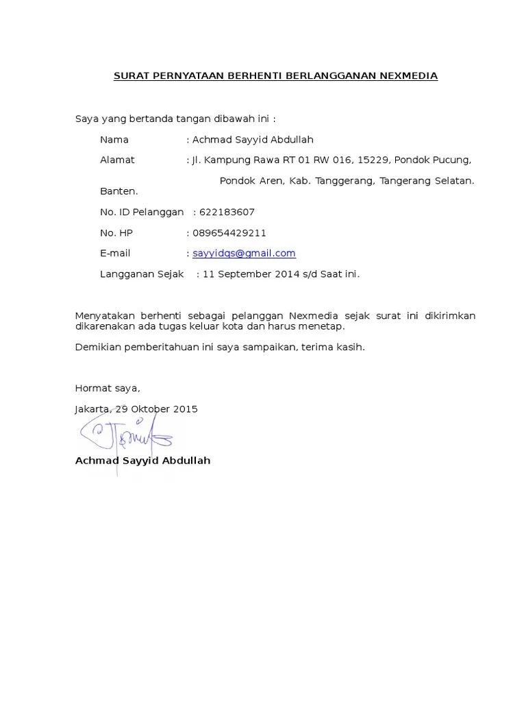 Text of surat berhenti langganan. Berhenti berlangganan internet speedy lampiran : Demikian surat kuasa ini saya buat dengan kesadaran dan tanpa paksaan dari pihak manapun agar dapat dipergunakan sebagaimana perlunya. Contoh surat kuasa pemutusan pemasangan indihome doc pdf. Pelanggan speedy atau indihome yang sudah tidak ingin melanjutkan layanan tersebut lagi, dapat mengajukan pemutusan atau pemberhentian langganan . Berhenti berlangganan internet speedy kepada yth.